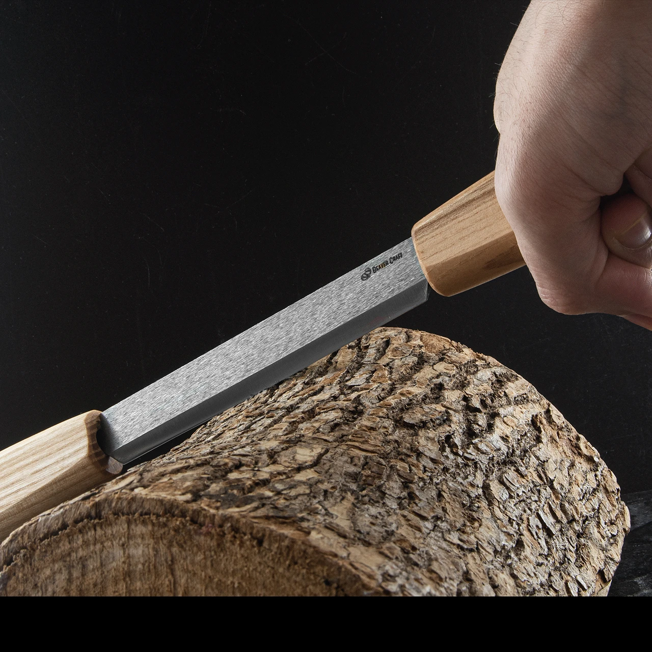 A drawknife (drawing knife, draw shave, shaving knife) is used to shape wood by removing shavings. The BeaverCraft Drawknife drawknife is a perfect tool if you want to remove not large slices of wood for flat faceted work. This shaving knife is designed for planning faceted parts or shaping a small circle. The blade has a thickness of only 2 mm, since this knife is designed for finishing delicate work.