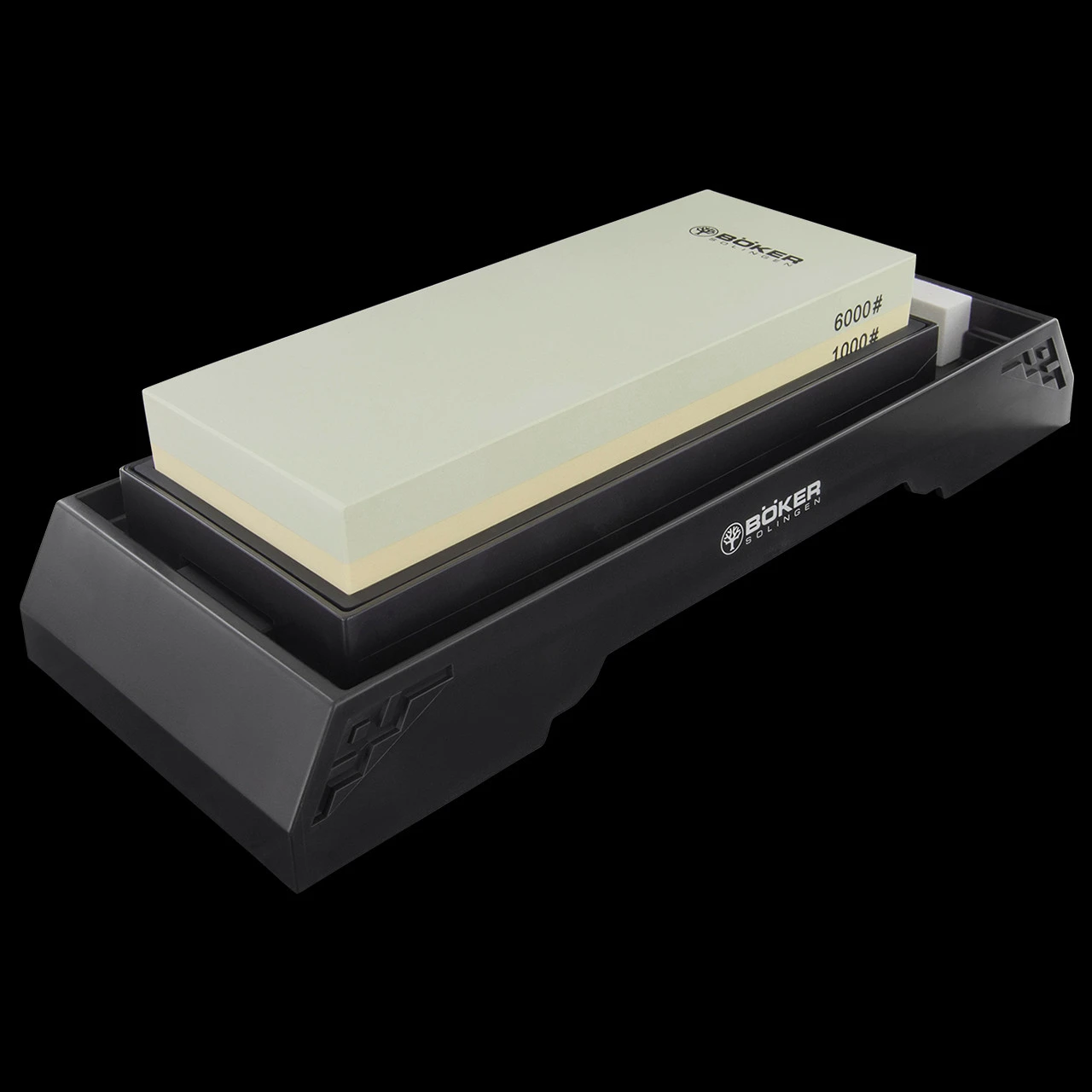 With the sharpening stations, Boker Manufactory Solingen offers comprehensively equipped professional solutions for expertly sharpening any type of steel blade. The centrepieces of the sets are a combined water sharpening stone with two grits each. Only high-grade Corundum of the highest homogeneity and quality is used for the stones. The usable grinding surface is 200 mm x 80 mm.
