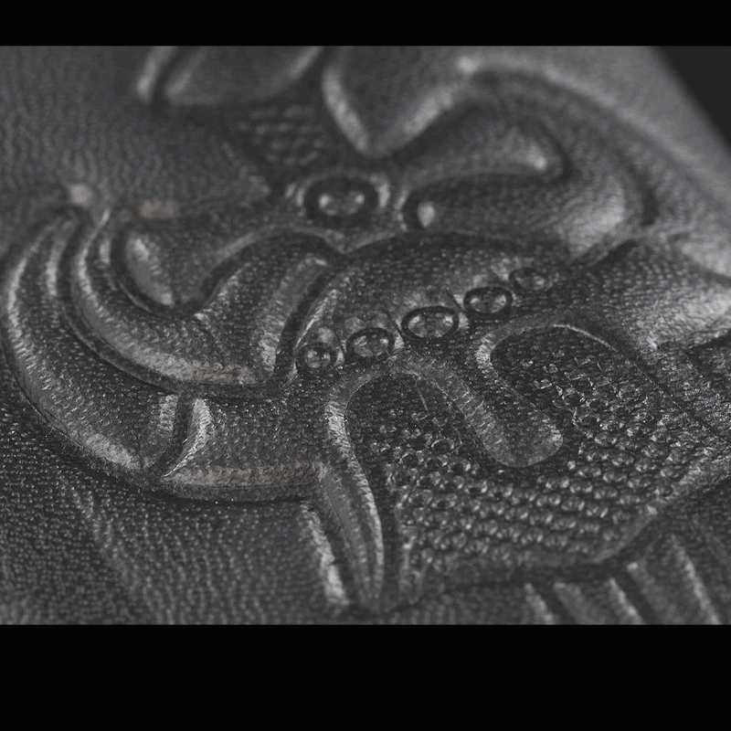 Black leather sheath for the Fallkniven NL5. Features a Fallkniven motif embossed into the leather. It is made up of four layers of leather to really protect the blade edge.