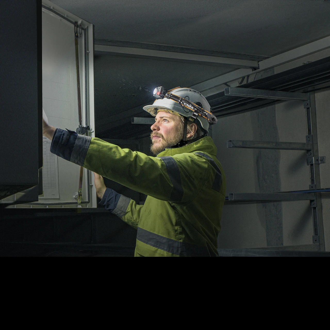 Combine main and flood beams to create your ideal beam profile. For example, 150 lumens close in flood lighting combined with 50 lumens, 59 meter main beam. Work in close yet have a little extra reach without adjusting the headlamp.