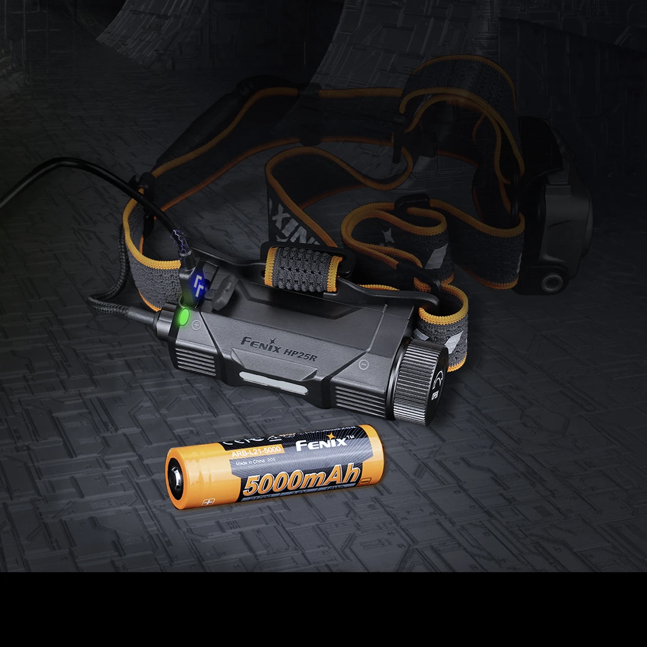 Fenix HP25R V2.0 sits at the pinnacle of the Fenix single lithium battery headlamp range. With a huge 5000 mAh capacity from its rear mounted, replaceable rechargeable battery, combined with precision engineered heat transfer from the LED’s into the cast / precision machined aluminium head unit, this headlamp delivers massive performance in terms of power output at high brightness, plus huge run time at lower brightness levels.