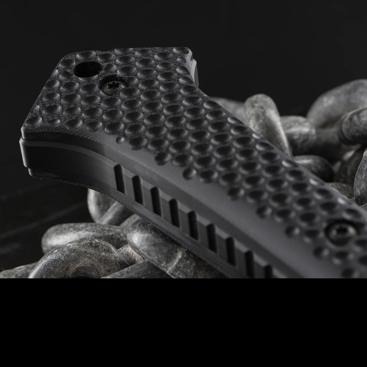 Unique to the CBA is a dual edge cutting head with sharp cutting edges. The CBA’s strong pommel incorporates a large lanyard hole for the attachment of a carabiner or rope lanyard, whilst the G10-clad, 3D-CNC machined handle has been designed for multiple handhold positions to suit single or double-handed use.