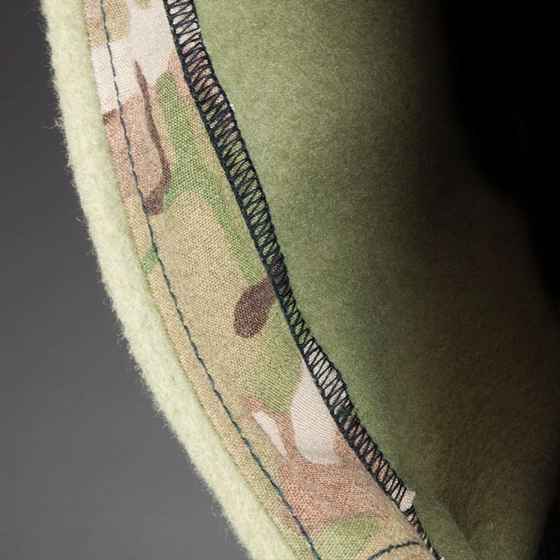 The American made Kitanica Rampart is a fire retardant hoodie constructed using a 200 gram Nomex Fleece and sewn with Nomex thread. Favoured by construction, petrochemical and refinery workers Nomex is fire retardent and will stand up to repeated washing far better than standard materials. The Multicam aramid brim around the inside of the hood helps to keep the shape of the hood and protect your face from high winds.