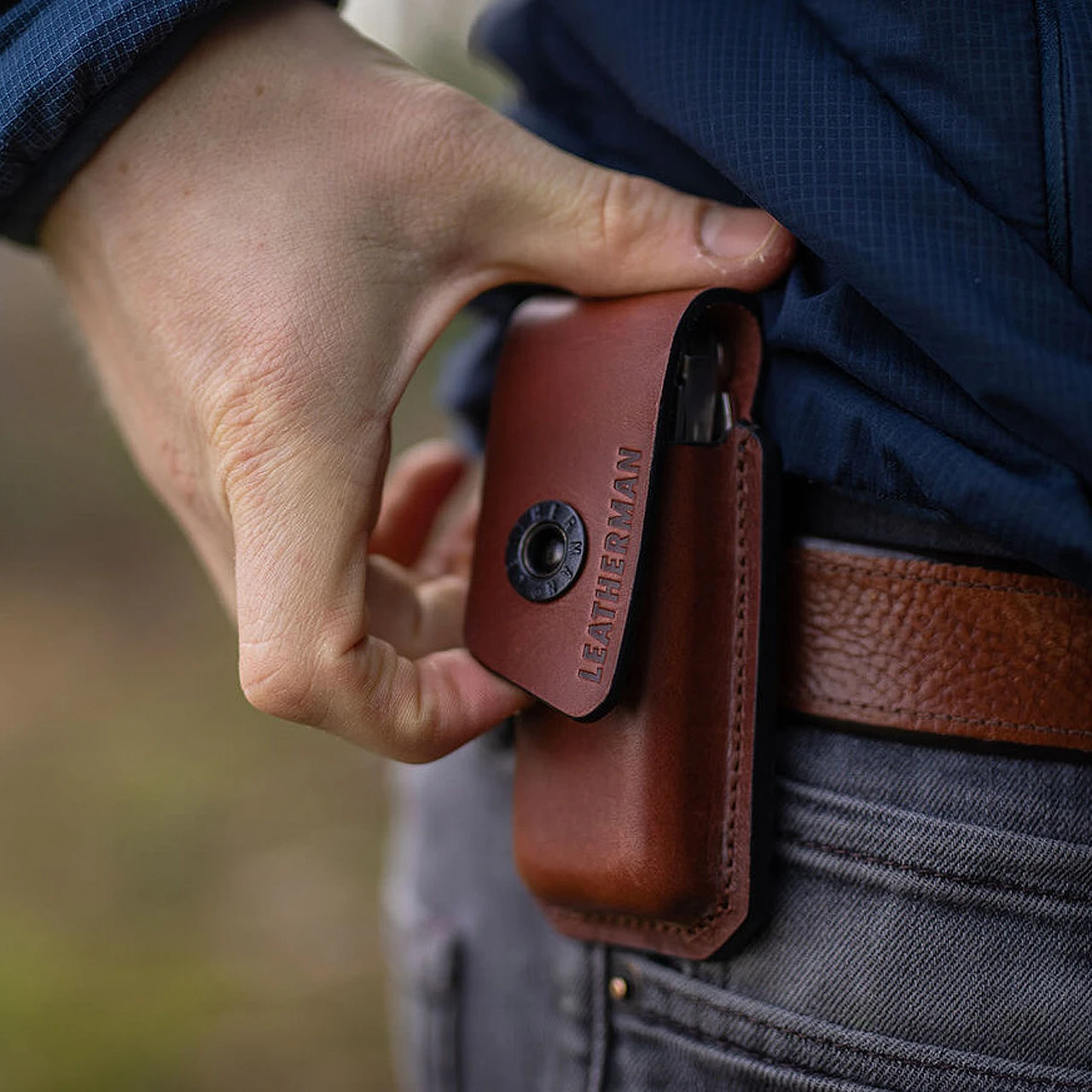 The custom snap keeps your tool secure for years of use. This sheath is premium protection for your Leatherman and backed by Leatherman’s two-year warranty. The belt loop accommodates belts up to 4.4cm width (1¾”)