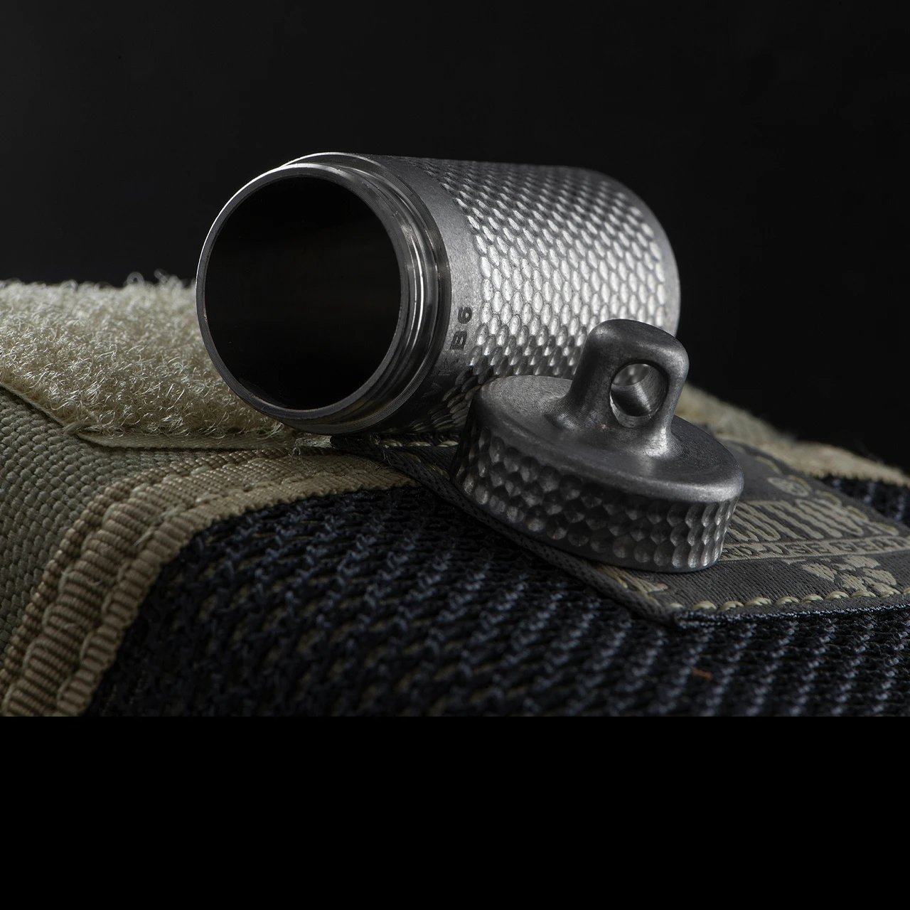 The Maratac Piccolo Nitro Vault XL is a super tough, super lightweight capsule made from Titanium. The lid screws on and off and is sealed with a rubber o-ring to keep the contents dry.