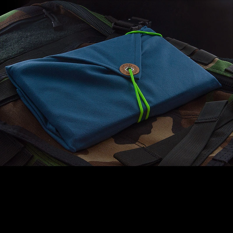- Microfibre dish towel doubling as a travel pouch, easy to wash and dry