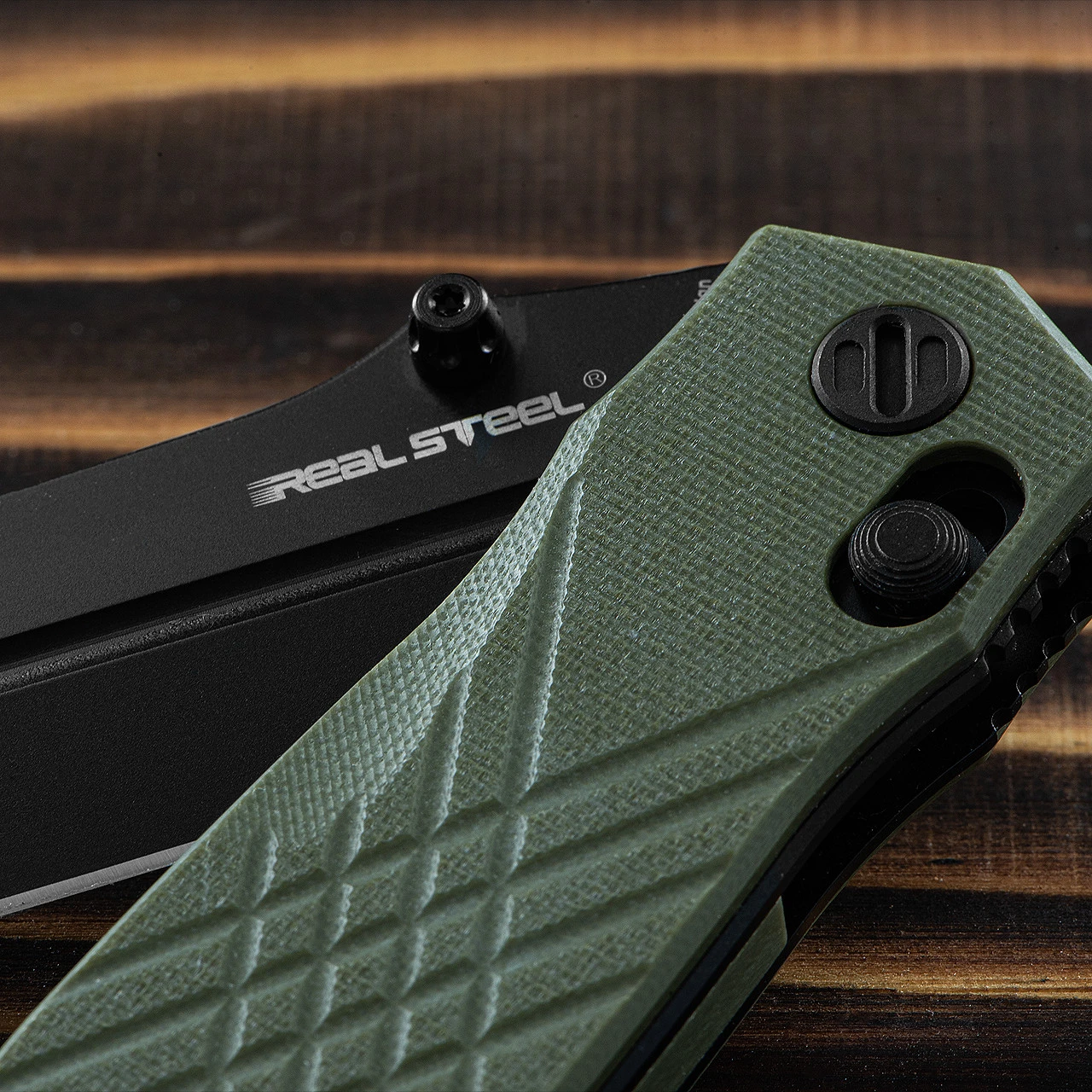 The thumb studs on both sides make it possible to open the knife one-handed with the left or right hand. The symmetrically designed G10 handle is designed for maximum comfort and ergonomics. The finger recesses with jimping on the upper and lower sides increase work safety.