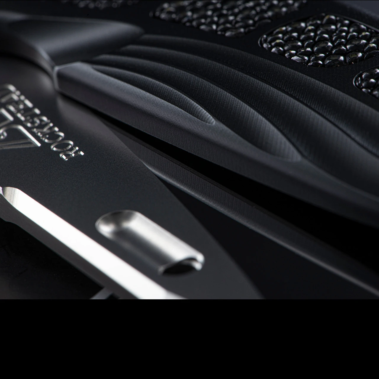 The Rockstead Tei ZDP has a clad or laminated blade and represents Rockstead’s peak of production. It features ZDP189 steel sandwiched between two layers of ATS34 giving the maximum edge retention and steel strength.
