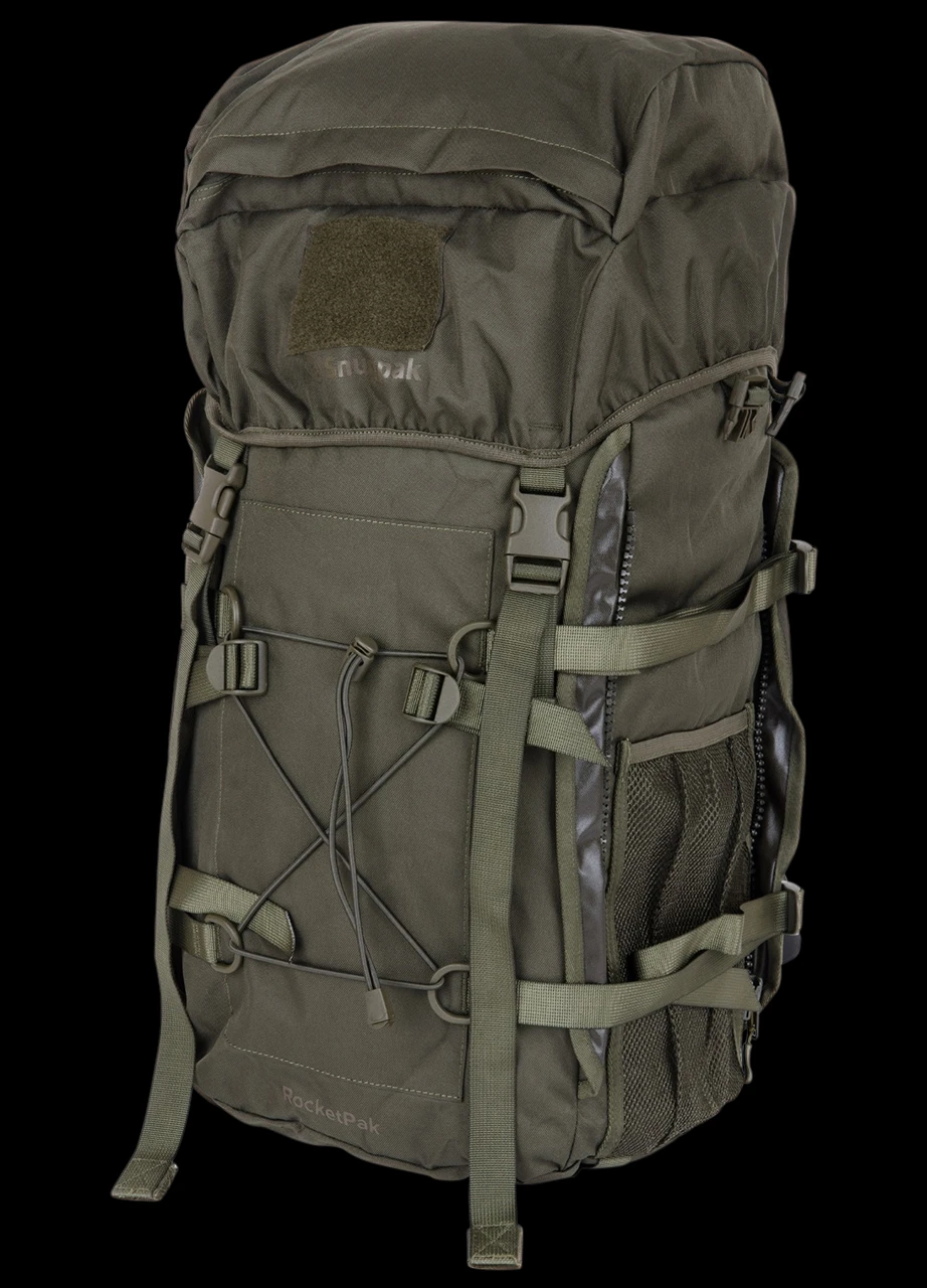 The Rocketpak WGTE is a serious rucksack for serious hikers, trekkers and military personnel. Designed primarily for versatility, this rucksack offers three size options: a full 70 litre capacity version; a 40 litre option created by removing the two 15 litre rocket pouches, leaving the 40 litre central compartment.