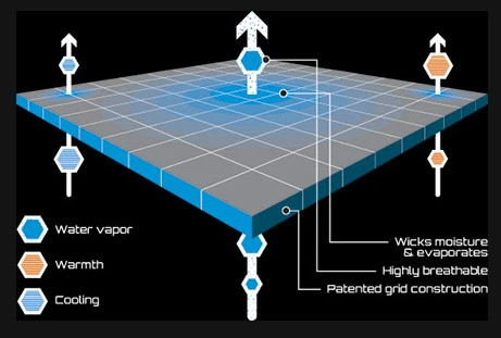 Power Grid is designed to keep skin dry when you sweat – The Power Grid construction wicks away 30% more moisture than single layer fabrics
