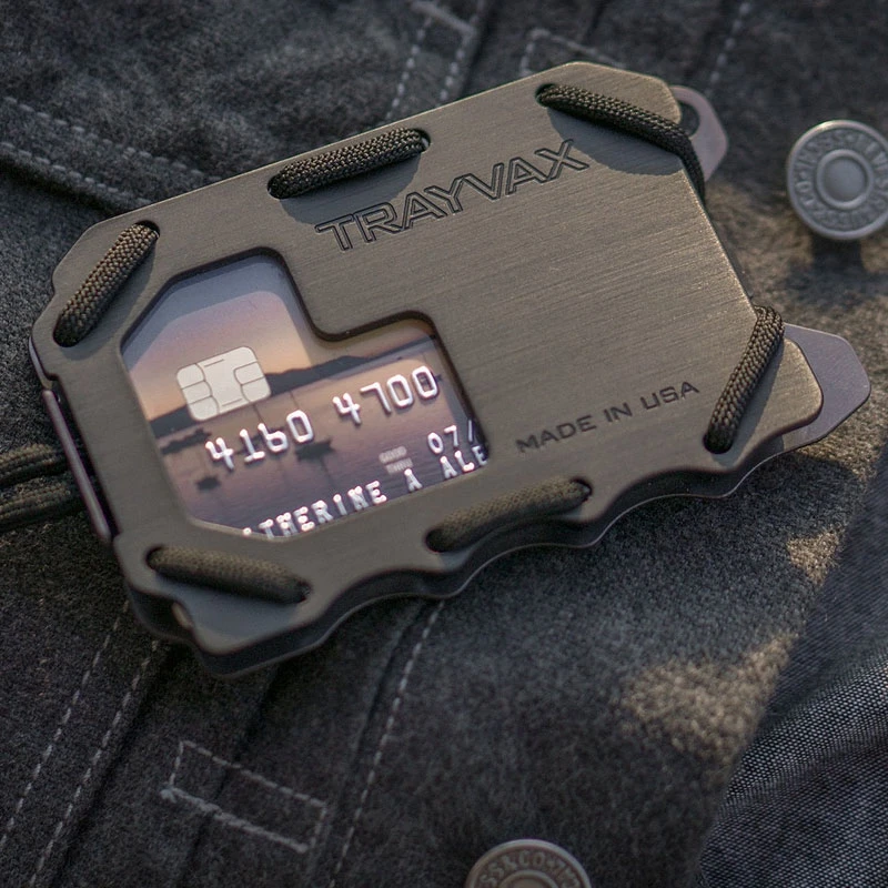 The Trayvax Original 2.0 is your sidekick for life. Designed to be more durable than its owner, this multifunctional wallet was created to withstand the toughest conditions. Made in the USA from aircraft-grade aluminum, MIL-SPEC paracord and stainless steel, the Original 2.0 features a durable pry bar, RFID-protection, utilitarian money/pocket clip, and an integrated bottle opener. Each feature was designed to make this wallet the ultimate sidekick.