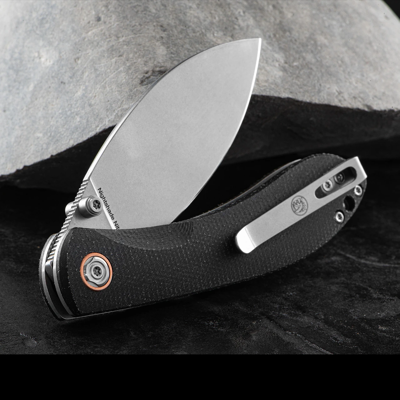 The Voxsteed Nightshade is inspired by the Shilin cutter, a knife design originating in Taiwan and Japan around the mid 1800s. It features a full flat ground leaf shape blade, with a pointy negative angled tip. It has proven to be a highly effective tool for many years.