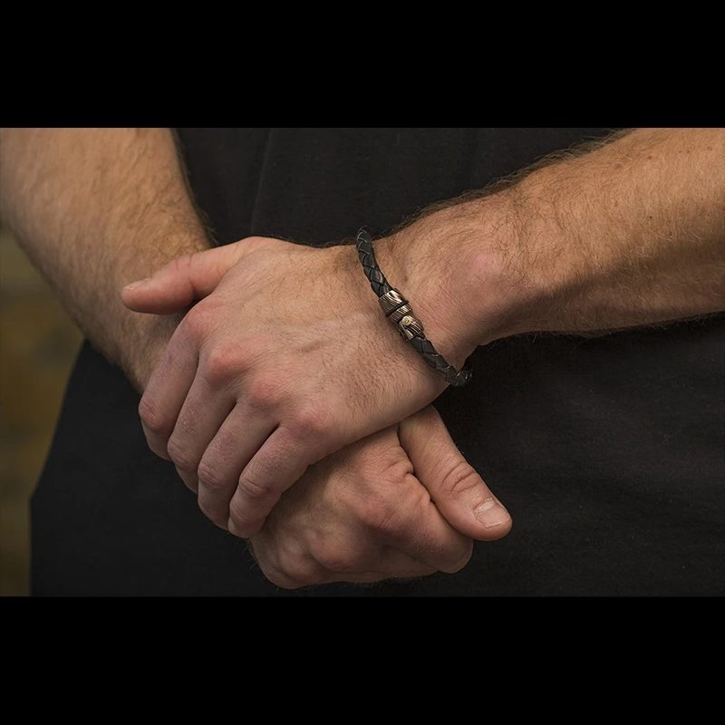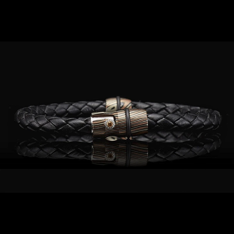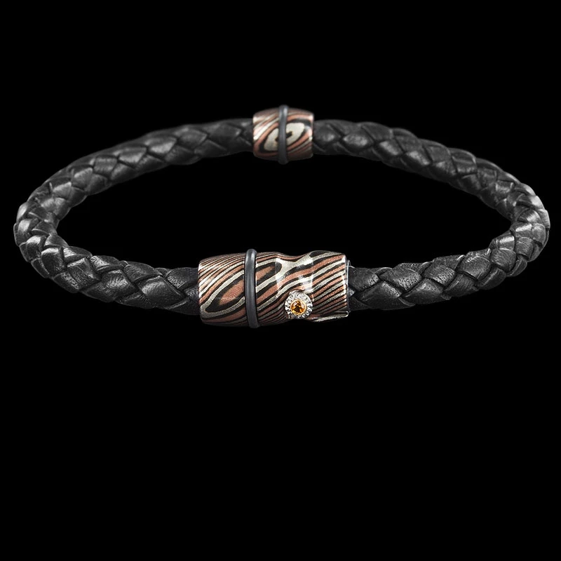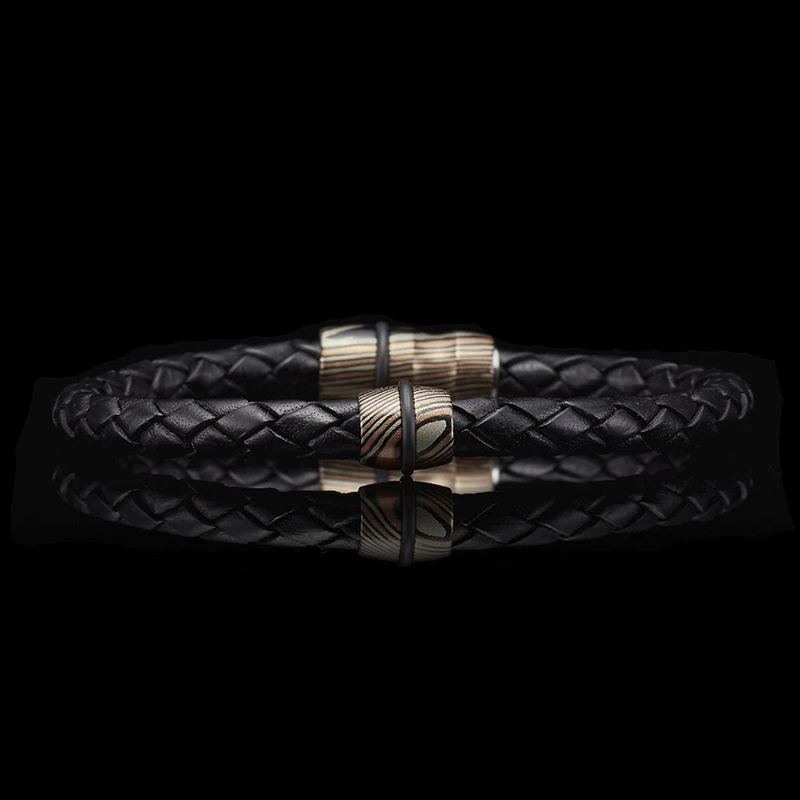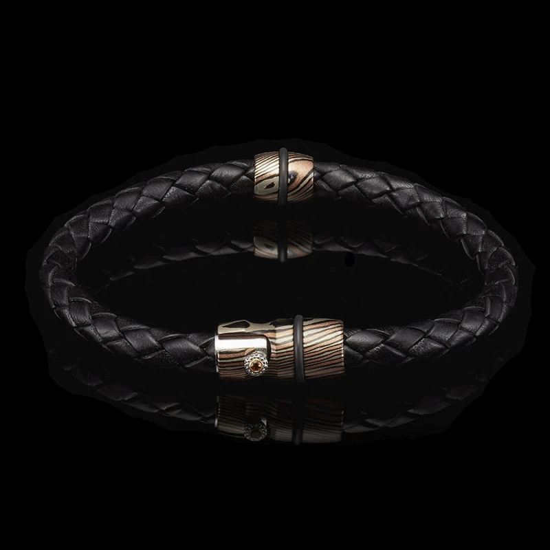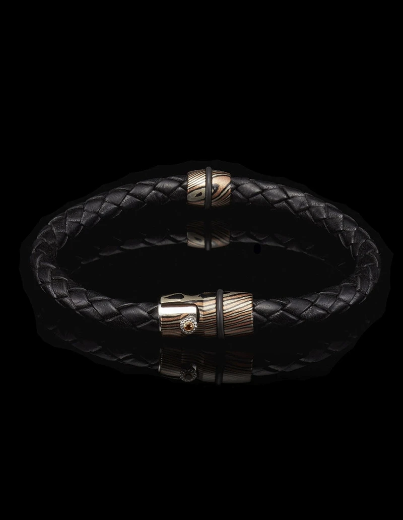Unique in every way, the William Henry LB1 Mokume ‘Venus’ bracelet features William Henry’s hand-forged mokume gane fittings over braided leather.